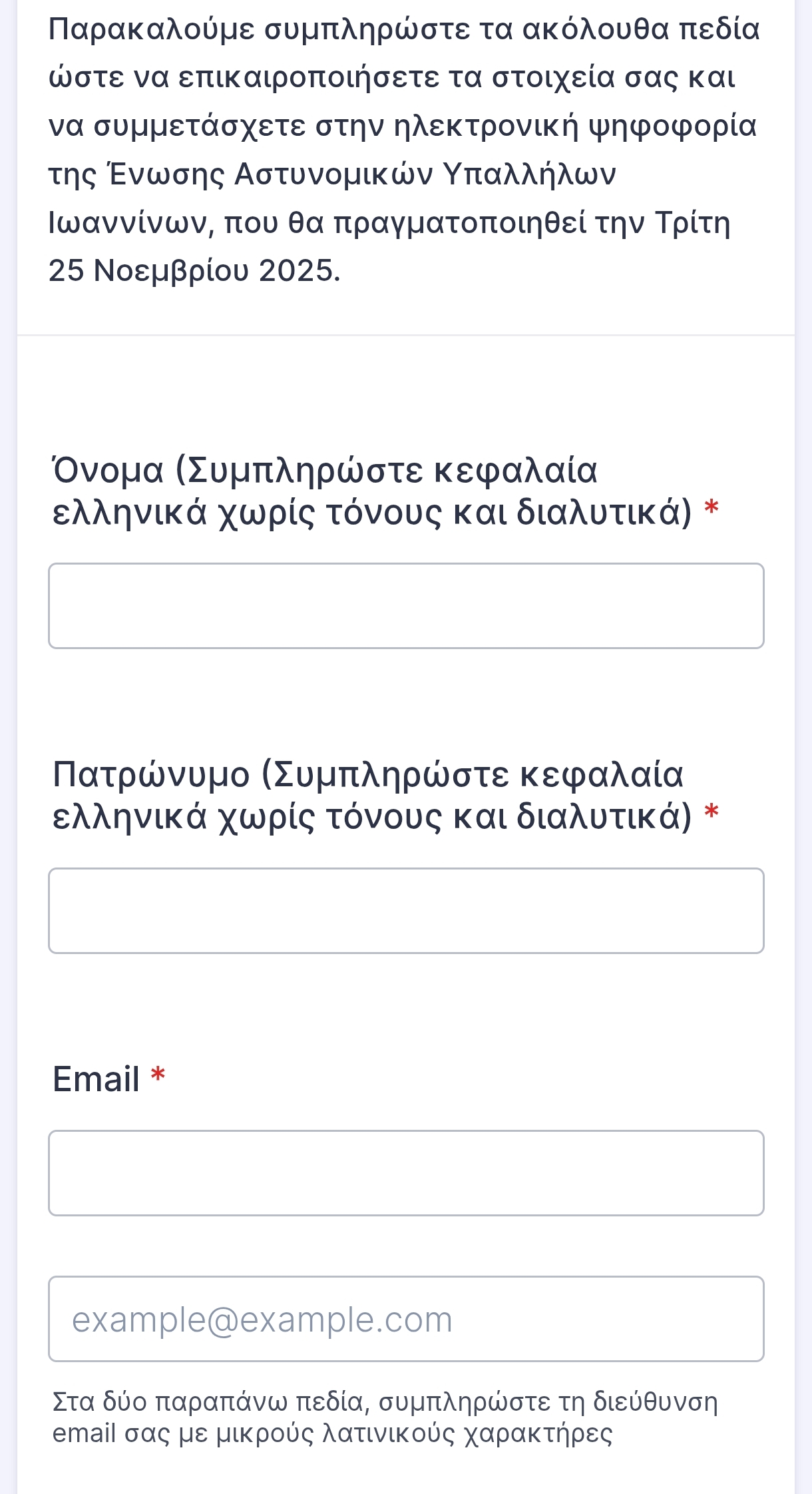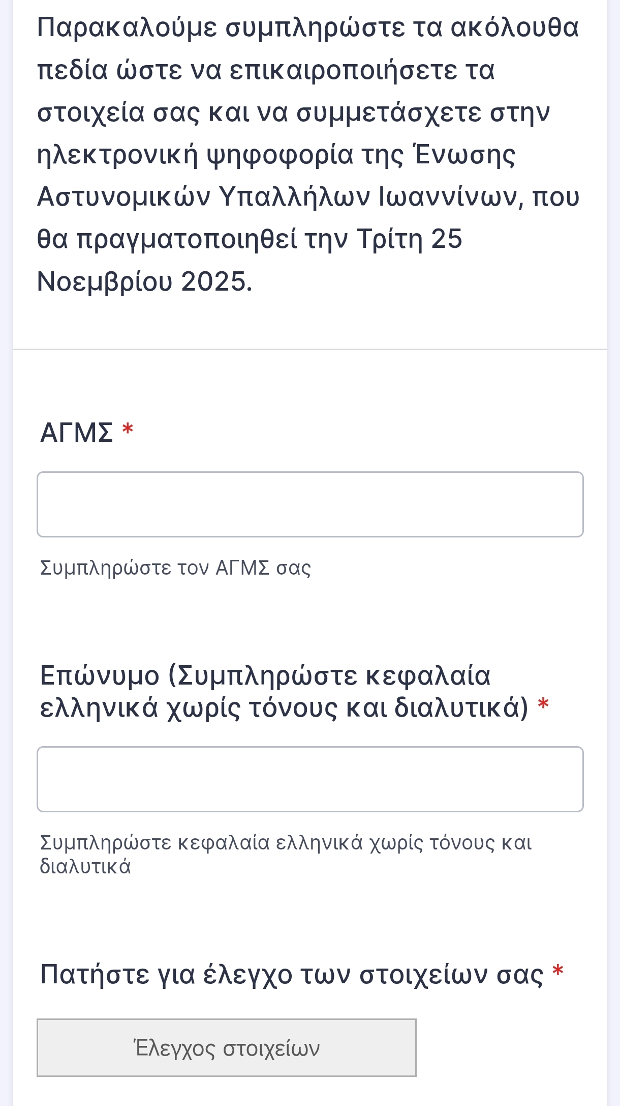 Παρακάτω είναι ο ειδικός σύνδεσμος (link) προκειμένου όσοι συνάδελφοι επιθυμούν να ψηφίσουν με αυτό τον τρόπο, να κάνουν ταυτοποίηση από αυτή την στιγμή μέχρι και 18/11/2025 ώρα 18:00.